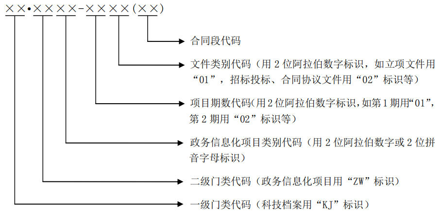 6.2.3.2 檔案門(mén)類代碼:可在科技檔案門(mén)類“KJ”下設(shè)置“政務(wù)信息化項(xiàng)目”二級(jí)門(mén)類,用“政務(wù)”拼音首字母“ZW”標(biāo)識(shí)。
