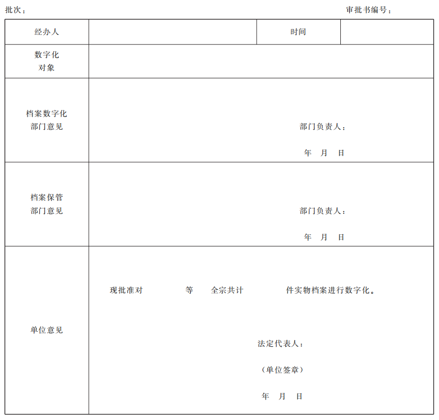 表 B.1 實(shí)物檔案數(shù)字化審批書