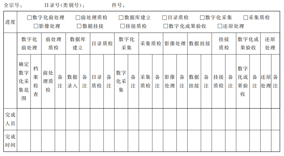 表 B.2 實(shí)物檔案數(shù)字化流程單