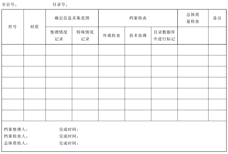 表 B.1~表 B.10給出了實(shí)物檔案數(shù)字化管理登記表示例。