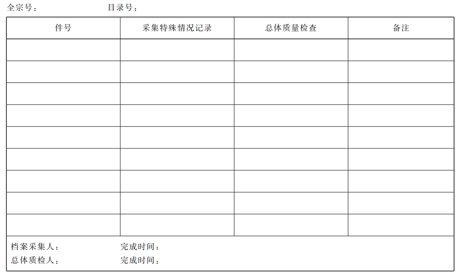 表 B.4 實(shí)物檔案數(shù)字化采集工作單