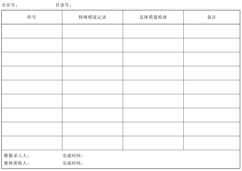 12.2.3 應(yīng)對(duì)檔案目錄數(shù)據(jù)進(jìn)行驗(yàn)收,主要包括數(shù)據(jù)庫中各條目的內(nèi)容、格式等的準(zhǔn)確程度,必填項(xiàng)是否填寫等。