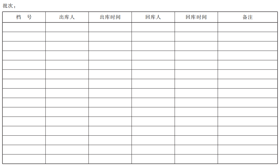 表 B.9 實(shí)物檔案數(shù)字化專用出(回)庫單