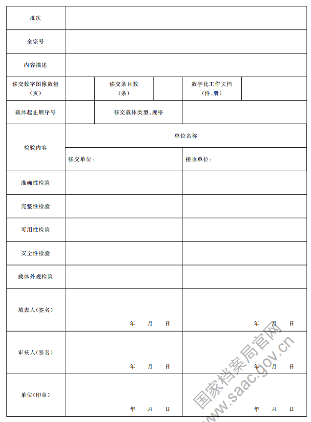 驗收合格的數(shù)據(jù)應(yīng)按照紙質(zhì)檔案數(shù)字化工作方案及時移交,并履行交接手續(xù)。移交單示例參見附錄B的表B.8。