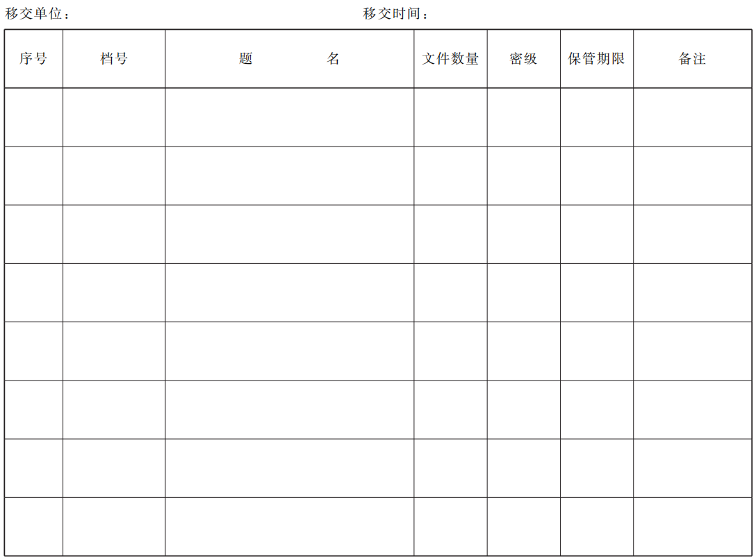 檔案移交單位在提交電子檔案移交信息包之前應按照附錄 C 表 C.1給出的樣式和內容將相關信息寫入《電子檔案移交接收登記表》。