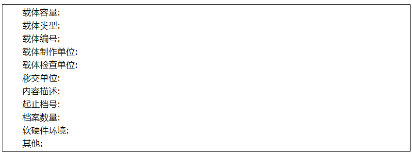 檔案移交單位應編制說明文件,存放與移交電子檔案有關的信息,包括電子檔案的移交單位、內容描述、起止檔號、檔案數量、讀取電子檔案所需要的軟硬件環(huán)境和其他有助于說明移交電子檔案的信息。