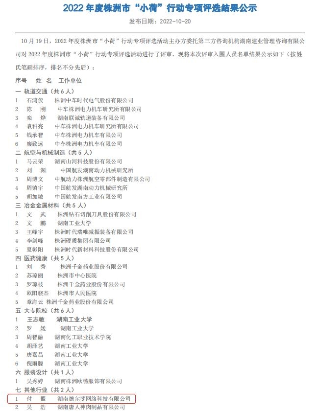 近日,湖南德爾斐網(wǎng)絡(luò)科技有限公司總經(jīng)理付盟成功入選株洲市“小荷”人才專項支持30人名單。