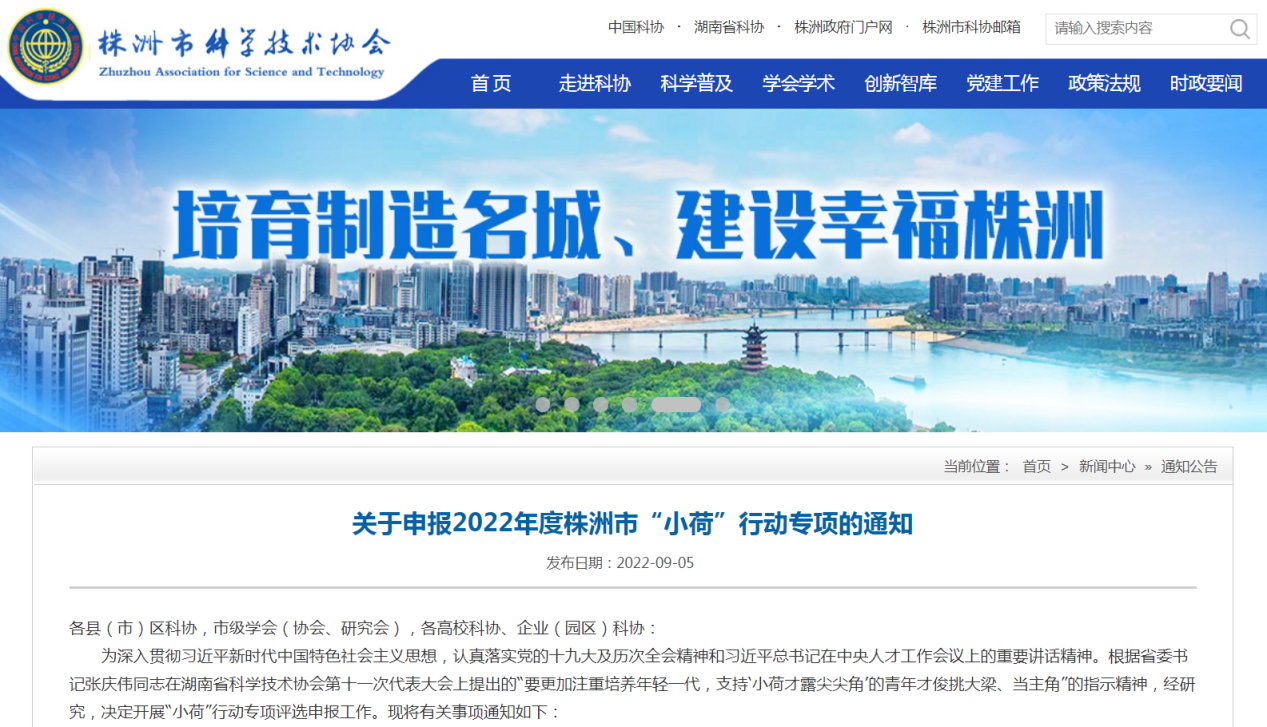 為深入貫徹習(xí)近平新時代中國特色社會主義思想,認(rèn)真落實黨的二十大及歷次全會精神和習(xí)近平總書記在中央人才工作會議上的重要講話精神,根據(jù)省委書記張慶偉同志在湖南省科學(xué)技術(shù)協(xié)會第十一次代表大會上提出的“要更加注重培養(yǎng)年輕一代,支持‘小荷才露尖尖角’的青年才俊挑大梁、當(dāng)主角”的指示精神。2022年度株洲市“小荷”行動專項評選啟動,為培育制造名城、建設(shè)幸福株洲,全面落實“三高四新”戰(zhàn)略定位和使命任務(wù),更多地關(guān)注和支持剛起步的年輕科技人員,以推動“人才30條”落地為重點,大力支持青年科技人才發(fā)展。