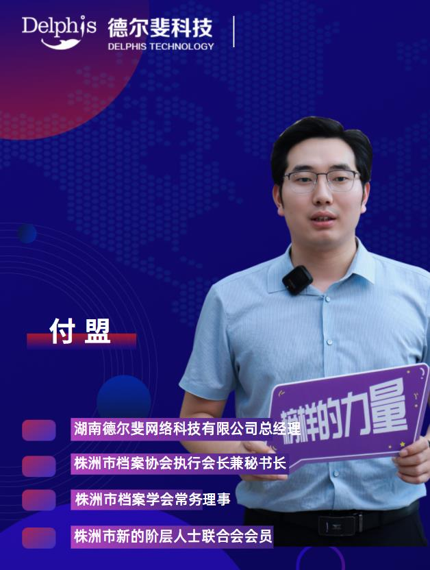 湖南德爾斐網(wǎng)絡(luò)科技有限公司總經(jīng)理付盟2017年畢業(yè)于湖南工業(yè)大學(xué),于2016年4月創(chuàng)立了德爾斐科技,始終致力于電子檔案全生命周期管理及檔案信息化管理行業(yè)全面國產(chǎn)化生態(tài)的研究,先后參與多項湖南省檔案科技項目和株洲市科技計劃項目的研究。