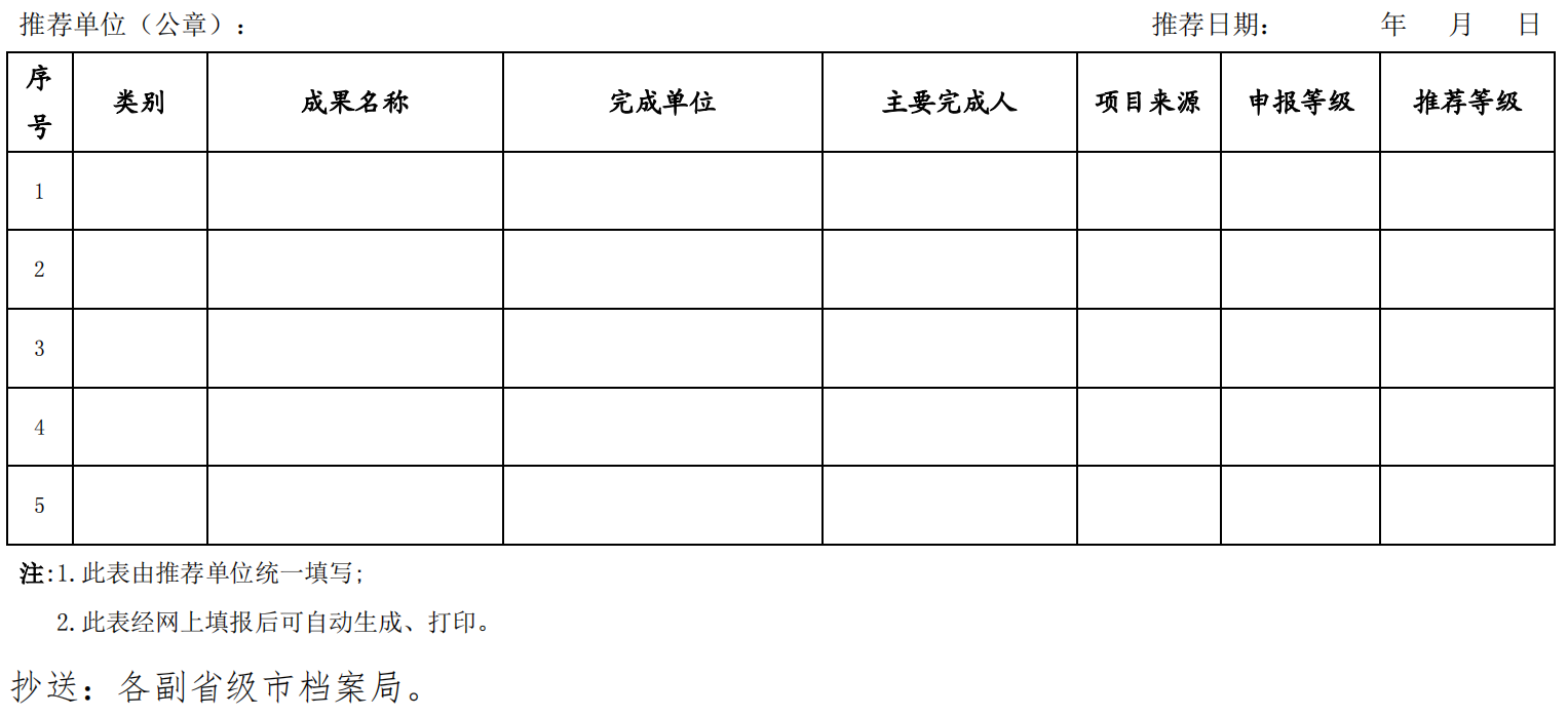 (二)《申報國家檔案局優(yōu)秀科技成果簡表》(見附件 2);